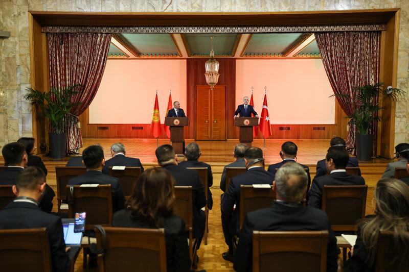 Görüşmelerin ardından TBMM Tören Salonu'nda düzenlenen ortak basın toplantısında konuşan Kurtulmuş, Turgunbek uulu ve heyetini Meclis'te ağırlamaktan duyduğu memnuniyeti dile getirerek, ata yurdundan esintilerin Türkiye'nin başkenti Ankara'ya getirilmiş olması dolayısıyla şükranlarını ifade etti.