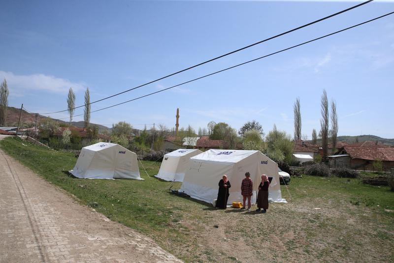 Sulusaray ilçesinde 18 Nisan'da meydana gelen 4,7 ve 5,6 büyüklüğündeki depremler sonrası vatandaşlara çadır dağıtımı yapıldı.