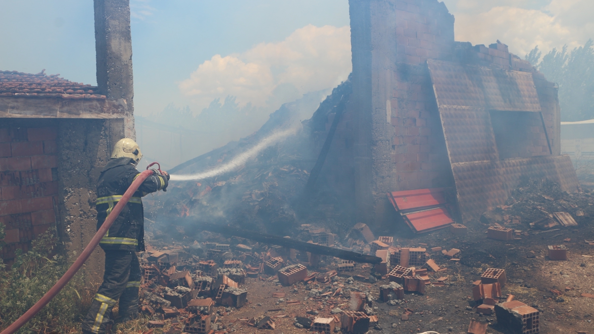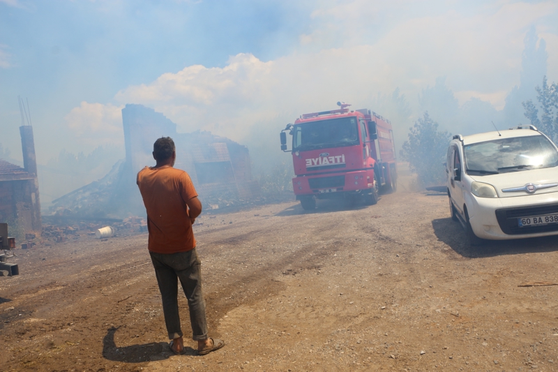 Merkeze bağlı Büyükbağlar köyünde Tokat-Turhal kara yolundaki Abdullah Doğan'a ait 500 büyükbaşın bulunduğu ahır ve samanlıkta saat 12.00 sıralarında yangın çıktı.