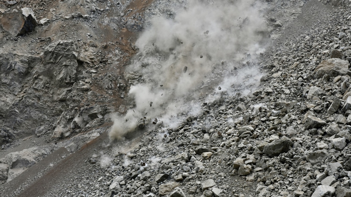 Ocaktan kopan büyük kaya parçaları, taş ocağına ait kullanılmayan tesis ve köy yolunda hasara sebep oldu.