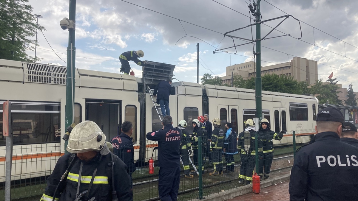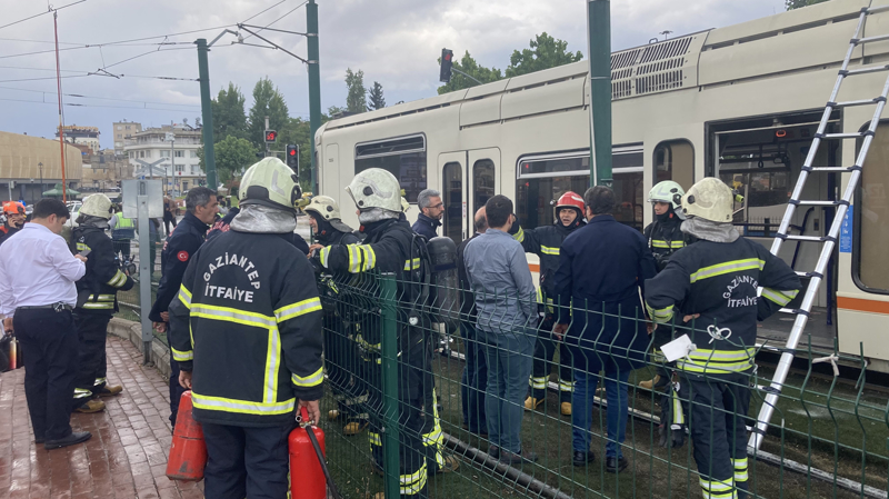 Yolcular tramvaydan tahliye edilirken bölgeye gelen itfaiye ekiplerinin müdahalesiyle yangın söndürüldü.