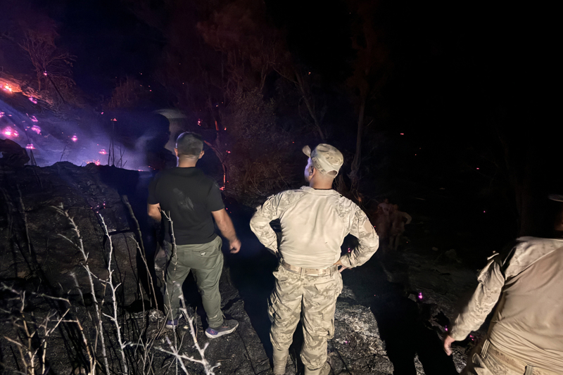 Yangını söndürmek için çalışma başlatan ekipler, iş makinelerinin yanı sıra kazma, kürek ve tırmıklarla alevlere müdahale etti. Jandarma ve emniyete ait TOMA'lar da yangın söndürme çalışmalarına destek verdi.