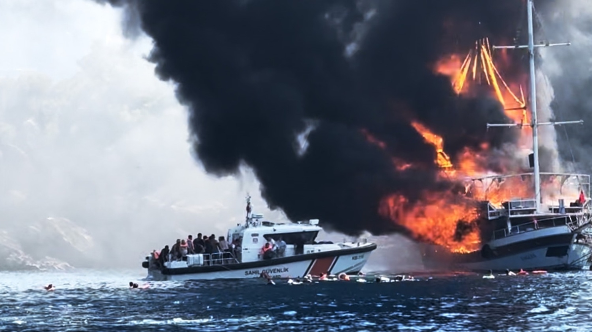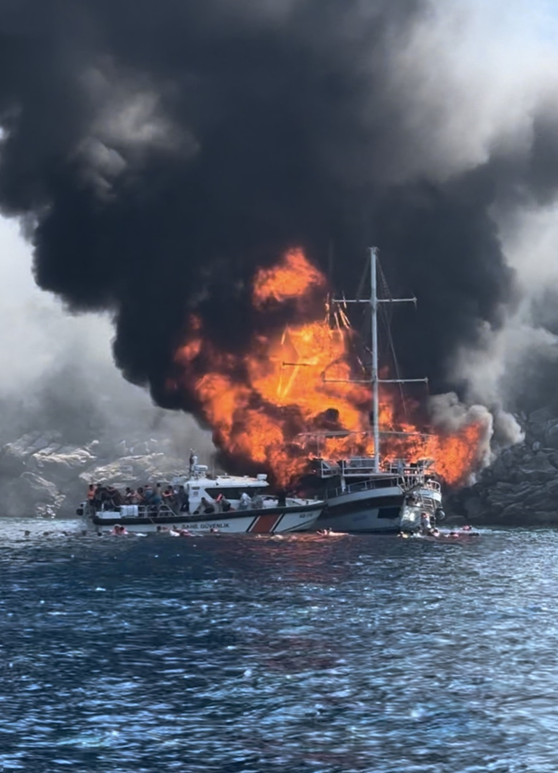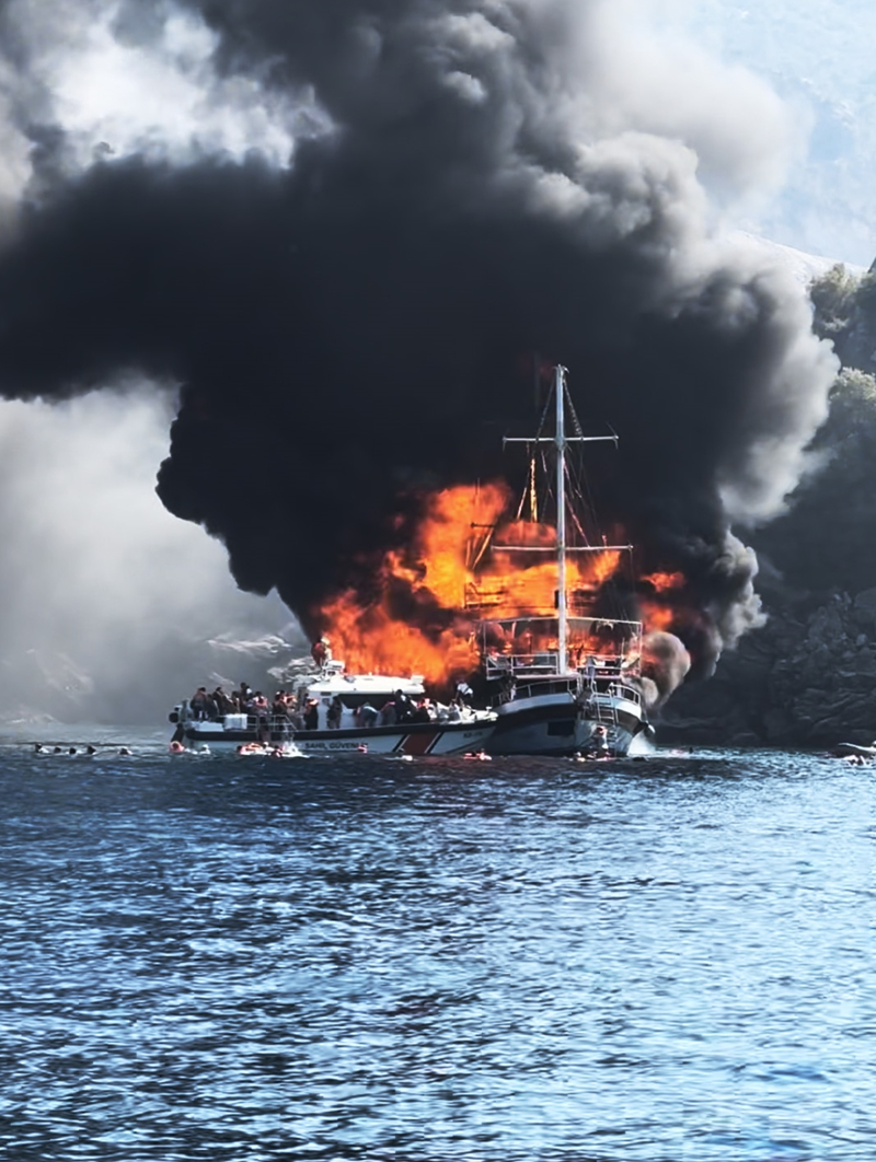 Denizin ortasında can pazarı! Tur teknesi alevlere teslim oldu