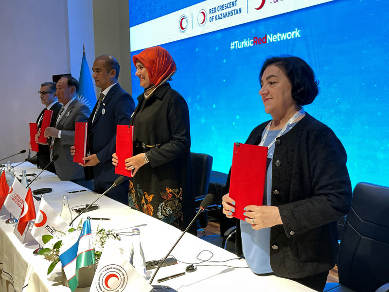 Törene katılan Azerbaycan Kızılay Başkanı Novruzali Aslanov, Kırgızistan Kızılay Başkanı Çingiz Cakıpov, Kazakistan Kızılay Başkanı Erkebek Argınbayev, Türk Kızılay Genel Başkanı Fatma Meriç Yılmaz, Özbekistan Kızılay İcra Müdürü Elvira Amiraliyeva mutabakat zaptına imzasını attı.
