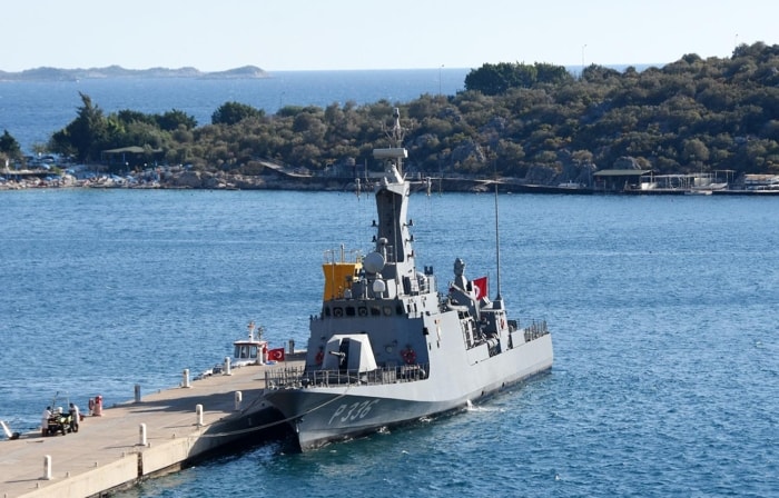 Türk fırkateyni Kaş Limanı'nda bekleyişini sürdürüyor