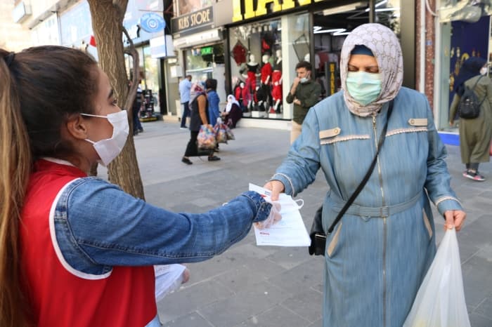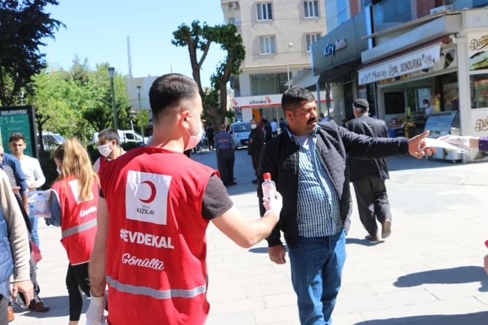 Türk Kızılay Şube Başkanı Nihat Altunç, kurumun, salgının başladığı günden itibaren sahada varlığını hissettirdiğini belirterek, genç gönüllülerle esnafı gezerek 1500 korucuyu maske ve dezenfektan dağıttıklarını söyledi.