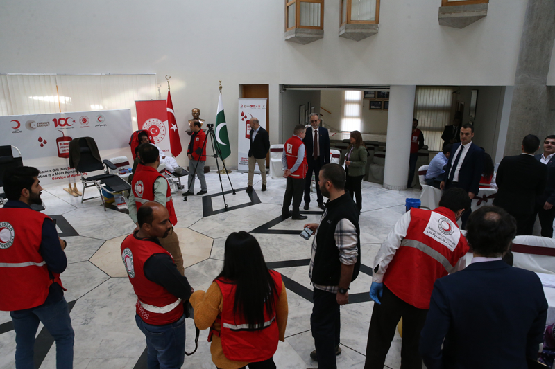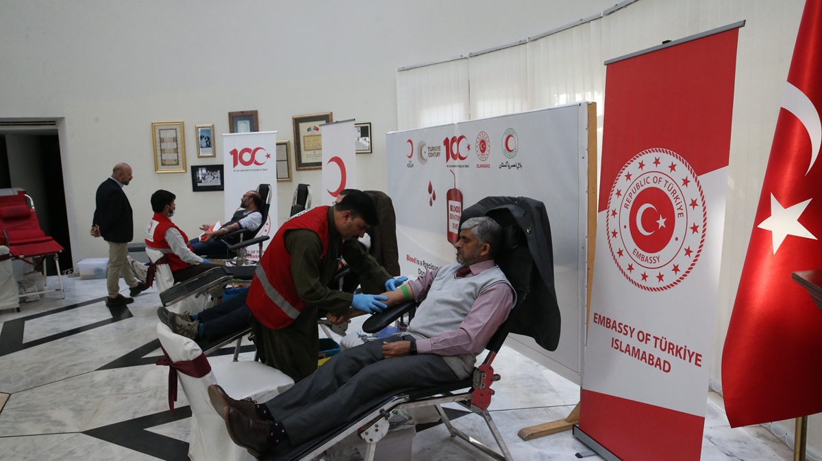 Pakistan'daki Türk kurum ve kuruluşlarının temsilcileri, Türk vatandaşları ve bu ülkedeki yabancı misyonlardan yetkililerin katıldığı kampanyada 33 ünite kan bağışında bulunuldu.