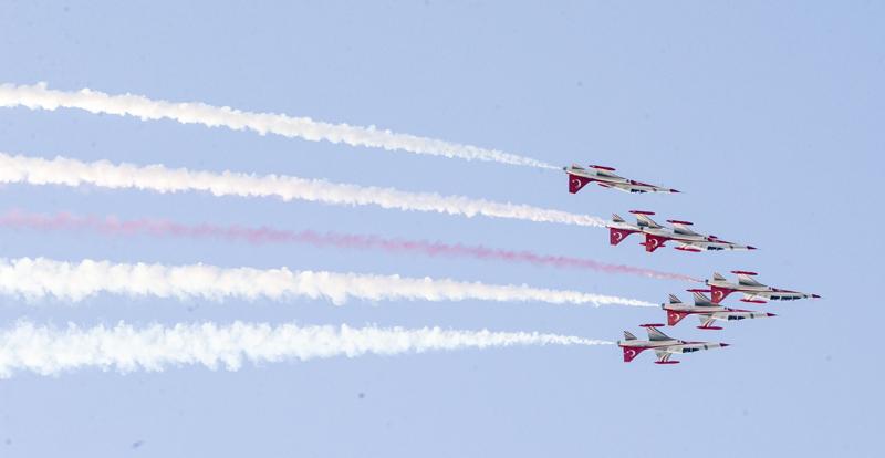 Türk Yıldızları, gösteri uçuşunda yaptığı akrobatik hareketlerle izleyenlere unutulmaz anlar yaşattı.