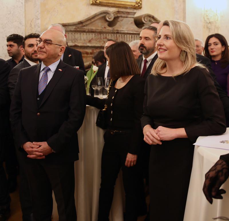 Türkiye'nin Viyana Büyükelçisi Ozan Ceyhun'un ev sahipliğinde gerçekleştirilen resepsiyona, Türkiye'nin Avrupa Güvenlik ve İşbirliği Teşkilatı (AGİT) Daimi Temsilcisi Büyükelçi Hatun Demir, Türkiye'nin Birleşmiş Milletler (BM) Viyana Ofisi Nezdinde Daimi Temsilcisi Levent Eler'in yanı sıra çok sayıda diplomat, bürokrat ve sivil toplum kuruluşu temsilcisi katıldı.