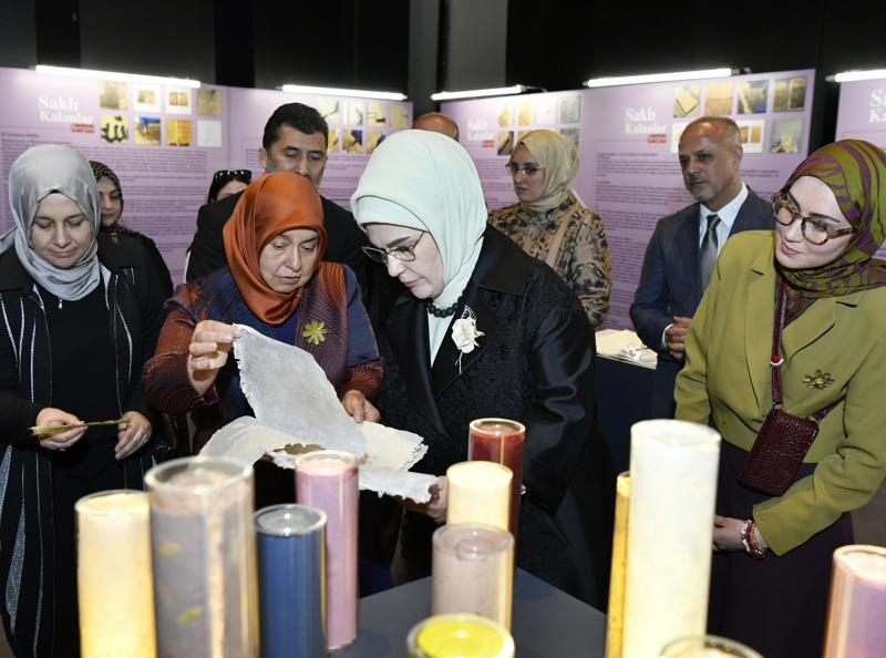 "HAFIZANIN SESSİZ TANIĞI OLAN 'SAKLI KALANLAR' SERGİSİ"Emine Erdoğan, sosyal medya hesabından yaptığı paylaşımında, "Geçmişten günümüze uzanan bir hafızanın sessiz tanığı olan 'Saklı Kalanlar' sergisi, bilgi ve kültürün korunmasının önemini bir kez daha hatırlatıyor. Toprağın ve zamanın içinden çıkıp bize ulaşan bu kıymetli mirasın, nice eserlerin doğuşuna vesile olmasını temenni ediyorum." ifadelerini kullandı.