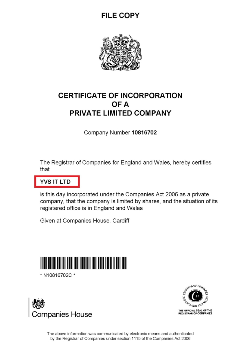 İngiltere'de kurulan şirketin adı ise YVS IT LTD olarak tespit edildi. Web sitesi de olan şirketin Birleşik Krallıktaki şirket numarasının da 10816702 olduğu görüldü. Danışmanlık ve şirket yönetimini kolaylaştırmak üzere yazılımlar üzerinde kurulan şirketin, 2024 itibariyle kurulması için en az 50 Bin Euro gerekiyor ve dörtte birinin ödenmiş sermaye şartı bulunuyor.