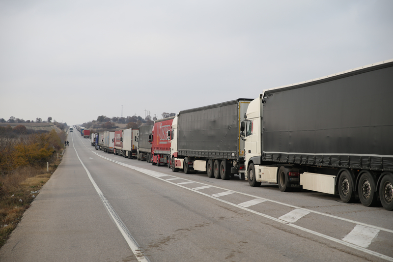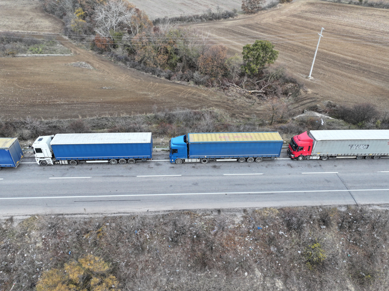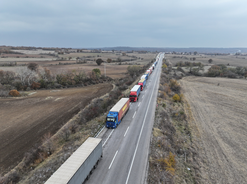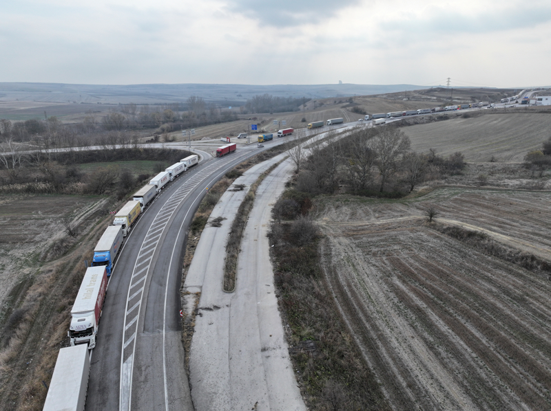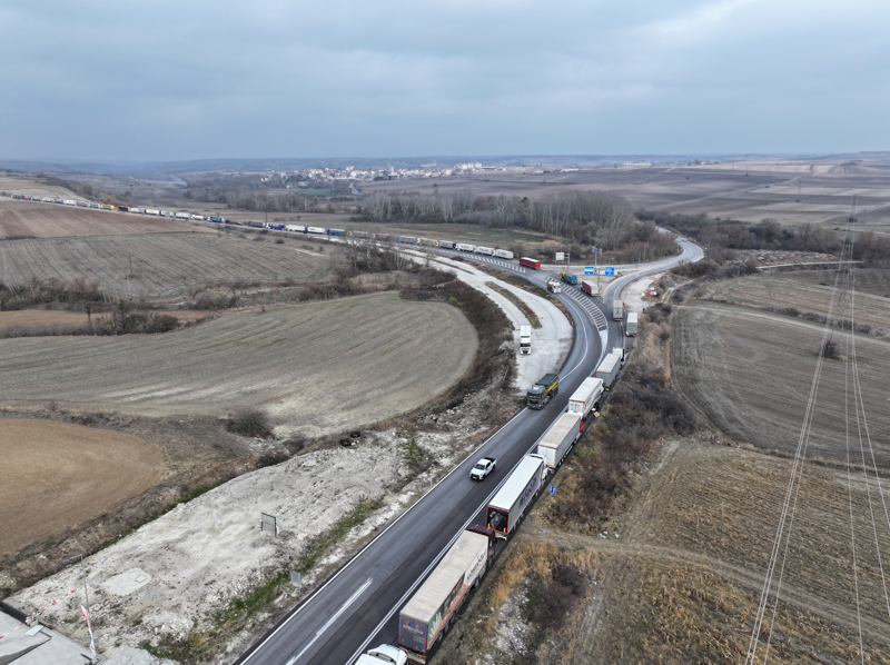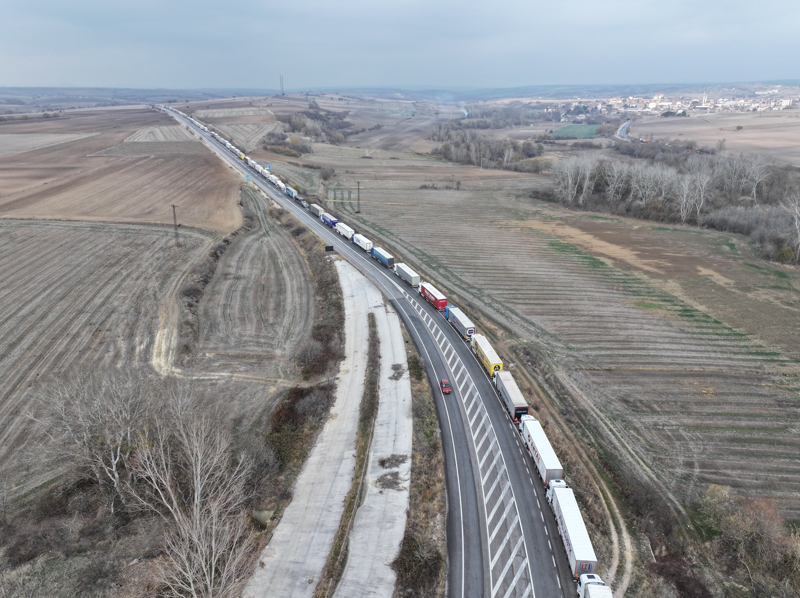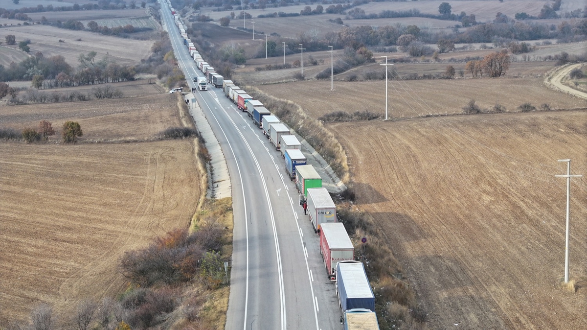 Hamzabeyli Sınır Kapısı'nda Avrupa'ya geçiş için yüzlerce tır sürücüsü araçlarında bekleyişlerini sürdürüyor.