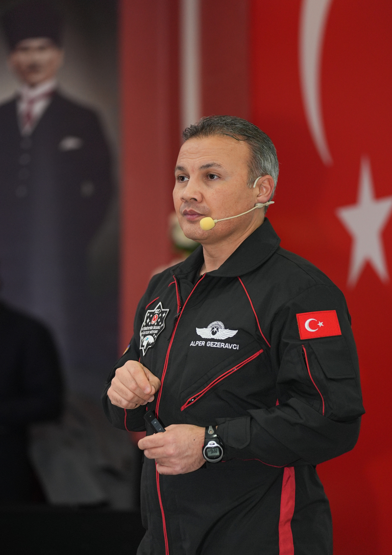 Gezeravcı, öğrencilerle buluşmayı, onlara tecrübelerini anlatmayı çok önemsediğini belirterek, "Çünkü yapılmış olan görev, bir Türk'ün kendi şahsi macerası için gidip geldiği bir yer değil. Türkiye'nin ilerideki projelerine imza atması şüphesiz olan genç nesillerimizin, dünyanın gelişmiş ülkelerinin çocuklarından hiçbir eksiğinin olmadığını net olarak ortaya koyacak, bu ülkenin tüm gençlerine hitap edecek bir görevdi." dedi.
