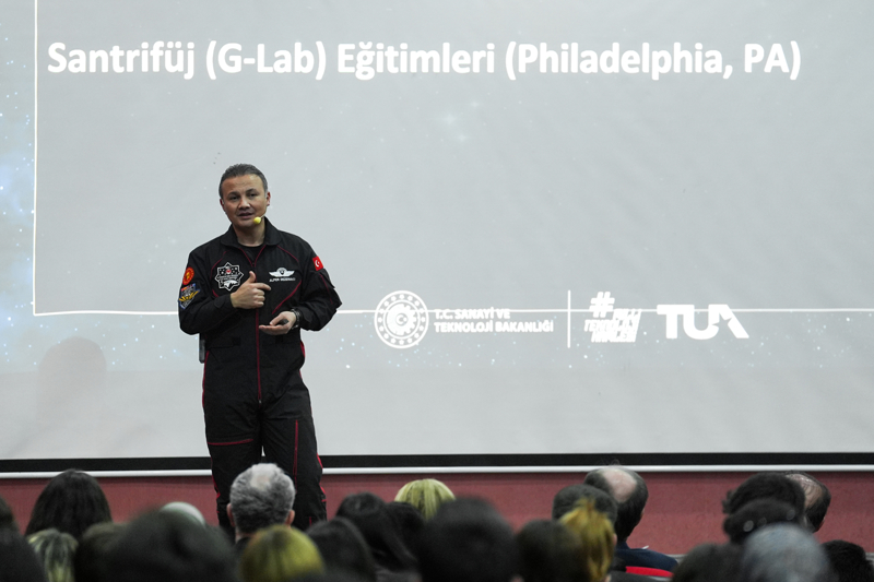 Üniversitenin Merkez Kampüs Konferans Salonu'nda gerçekleştirilen etkinlikte Gezeravcı, uzay yolculuğu sürecine ilişkin sunum yaptı, öğrencilerin uzayla ilgili sorularını yanıtladı.