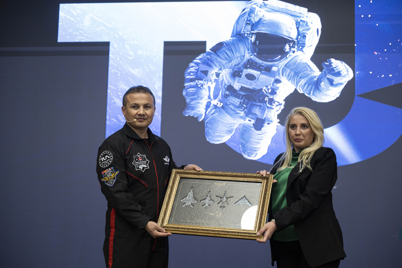 "Biz böyle bir jeopolitik konumda ayakta, güçlü kalabilmiş bir ülkeyiz. Bu nedenle de genç kardeşlerimizin potansiyellerini aktarabilecekleri alanlardan mahrum kalmalarına asla müsaade etmeyeceğiz. Uzayda hak ettiğimizi alacağız. 8 Haziran'da uzaya çıkacak kardeşimiz (Tuva Cihangir Atasever) yine deneyler yapacak. 8 Temmuz'da yerli ve milli uydumuz TURKAST 6A'yı uzaya yollayacağız. Biz potansiyelimizin farkındayız. Çatı organizasyon konumunda olan Avrupa Uzay Ajansı kendisine 27 ülkeden yapılan 22 bin başvuruya rekor diyor. Bizim ülkemizdeki ilana 36 bin kişi başvurdu. Potansiyelimizin farkındayız."