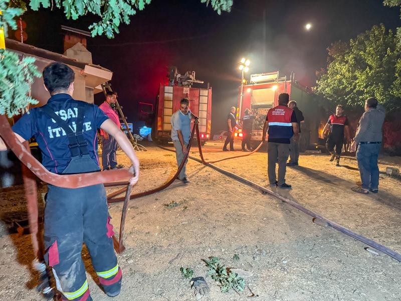 Yangın bölgesindeki 1 bağ evi ile 1 küçükbaş hayvan çiftliği tahliye edildi.