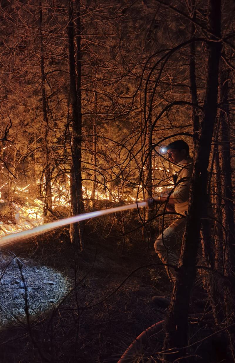 Haber verilmesinin ardından bölgeye, Orman İşletme Müdürlüğüne bağlı 13 arazöz, 5 iş makinesi, itfaiye ekipleri ile 1 uçak ve 1 helikopter sevk edildi.