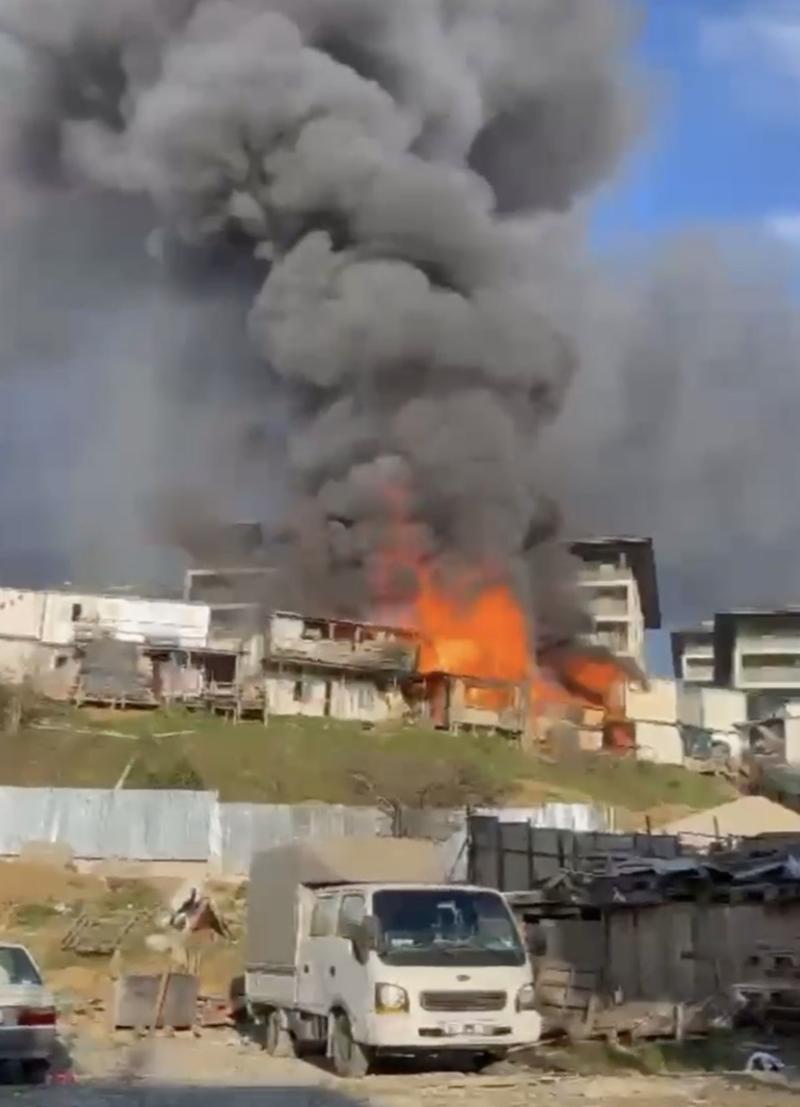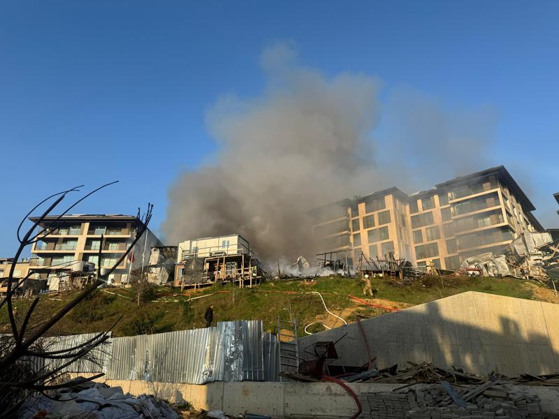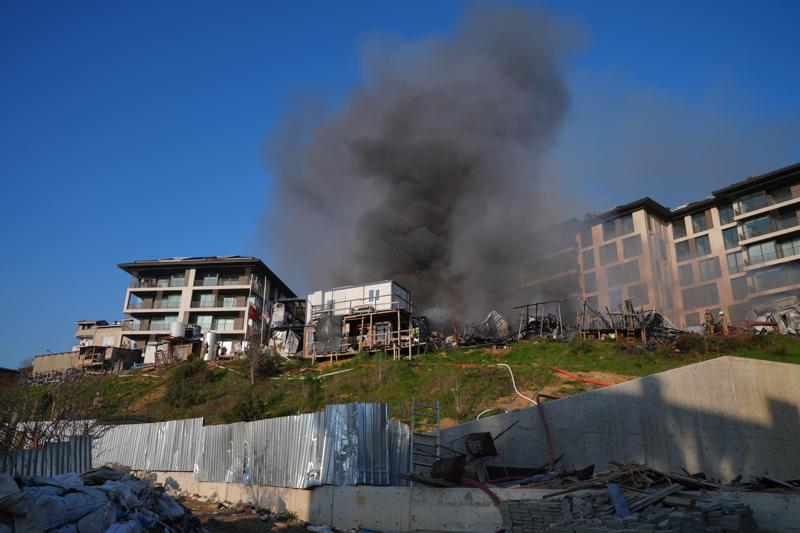 Burhaniye Mahallesi Köroğlu Sokak'ta 250 işçinin çalıştığı inşaat sahasındaki konteynerlerde henüz belirlenemeyen nedenle yangın çıktı.