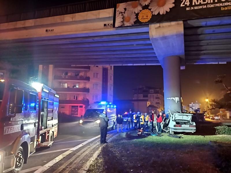 Balıkesir'in Altıeylül ilçesinde kontrolden çıkarak üst geçidin ayağına çarpan otomobilin sürücüsü hayatını kaybetti.