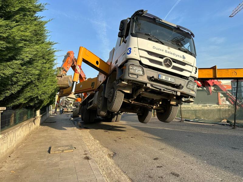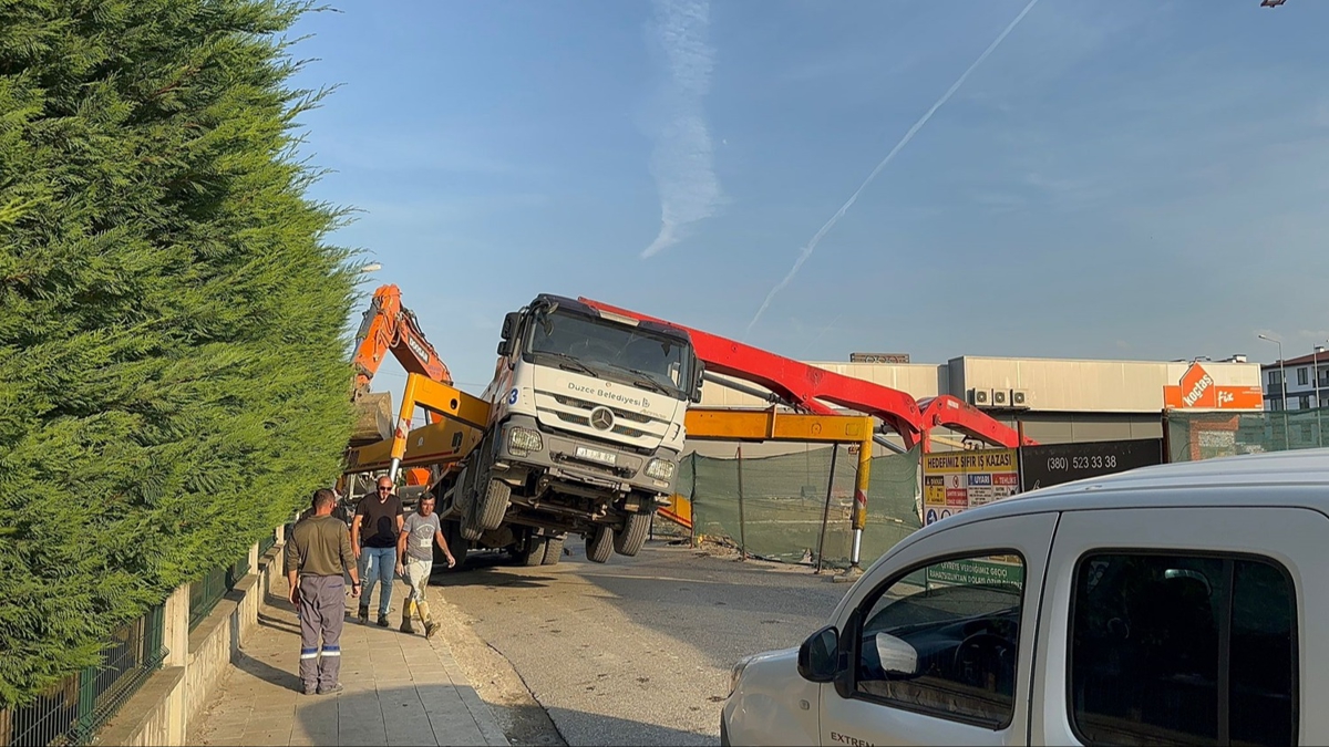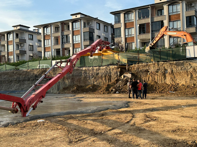 Fatih Mahallesi'nde bulunan inşaat alanında temel atma işlemi sırasında beton pompası aracının bulunduğu alanda göçme meydana geldi.