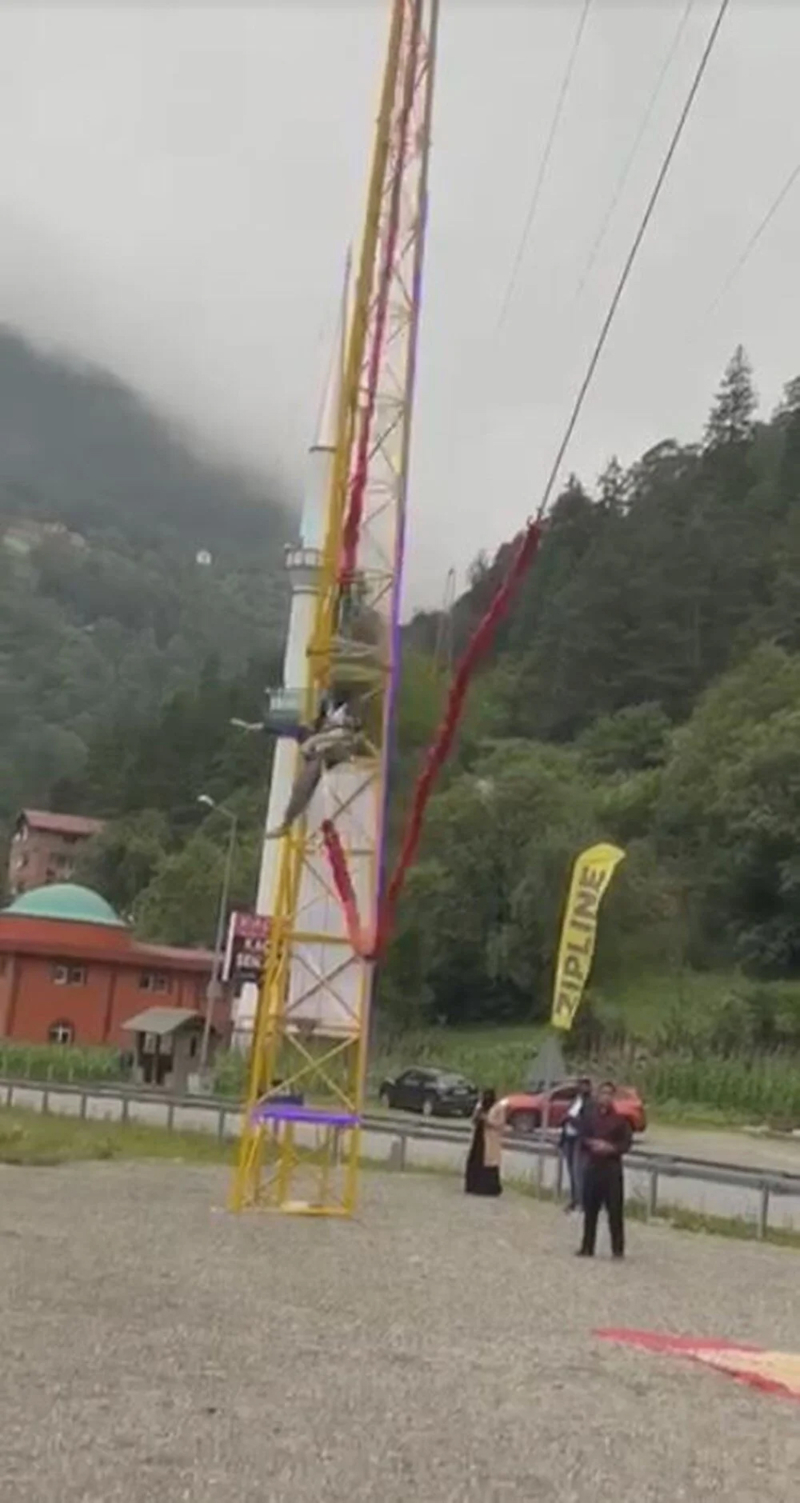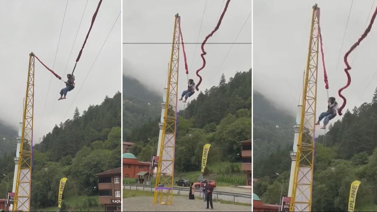 Çaykara ilçesindeki turizm merkezi Uzungöl'ü ziyaret eden Semanur Şahin, arkadaşlarıyla adrenalin yaşamak için 'insan sapanı' diye adlandırılan 'bungy catapult'u deneyimlemek istedi. Esneyebilen halatlı mekanizmaya bağlanan Şahin, yerden metrelerce havaya fırlatıldı. Bu sırada halatlardan birinin kopması sonucu ayağından hafif yaralanan Semanur Şahin, havada asılı kalırken, görevlilerin müdahalesiyle bulunduğu halattan kurtarıldı.