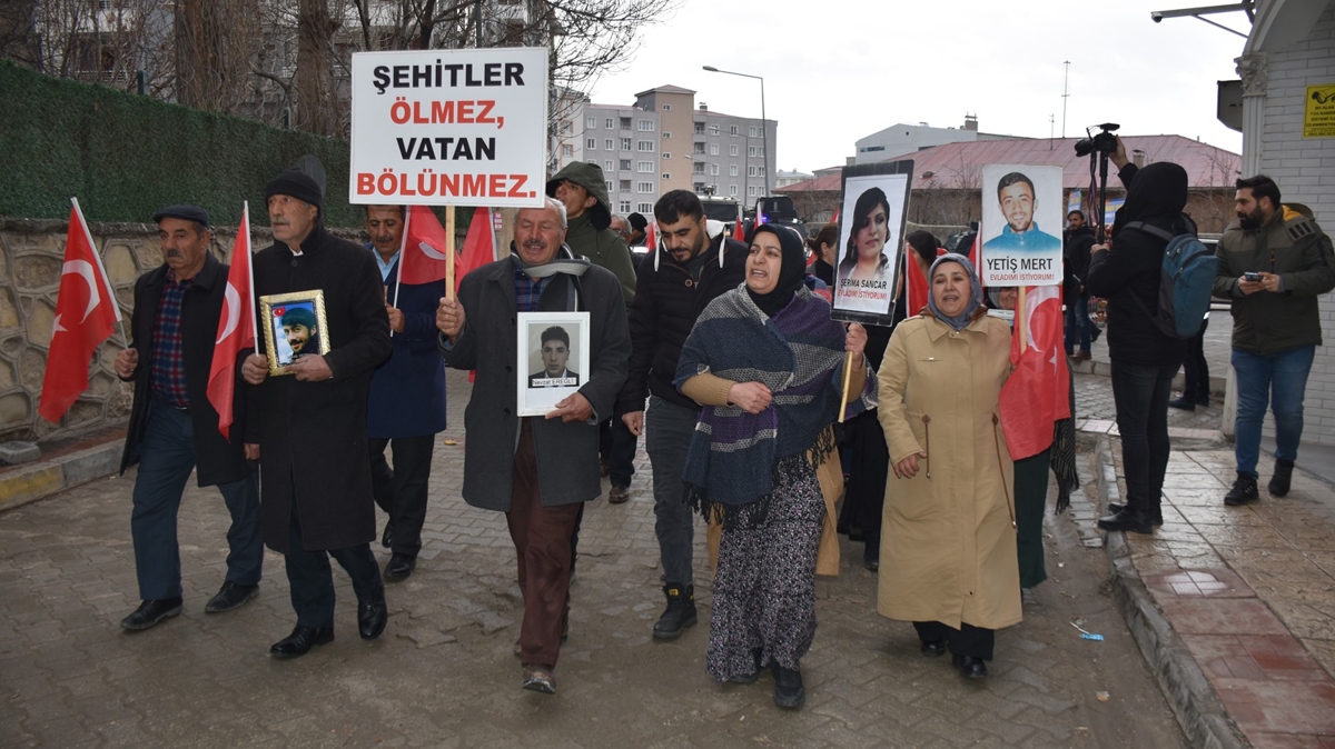 HDP ve terör örgütü PKK aleyhine slogan atarak il başkanlığı önüne kadar yürüyen aileler, çocuklarına teslim olmaları çağrısında bulundu.