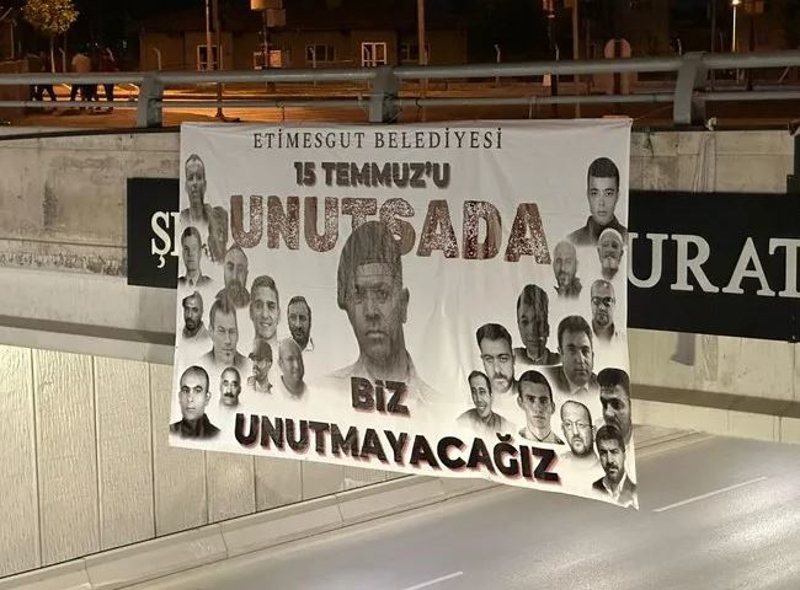 Şehitlerimizin fotoğraflarının yer aldığı afişlerde "Etimesgut Belediyesi 15 Temmuz'u unutsa da biz unutmayacağız" mesajı verildi.