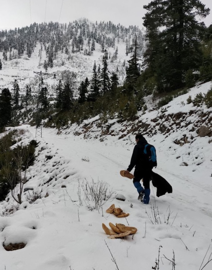Doğa koruma ekipleri ve dağcılar, pazar artığı sebze ve ekmekten oluşan 770 kilogram yemi, yaban hayvanlarının sıklıkla uğradığı bölgelere bıraktı.