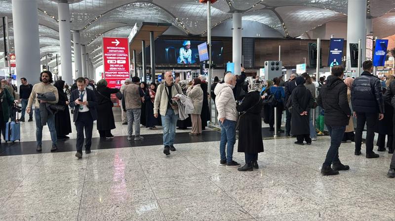 Yarıyıl tatili ile umreye giden yolcuların aynı saatlerde İstanbul Havalimanı'na gelmesiyle öğlen saatlerinde başlayan yolcu yoğunluğunun, hafta sonunda da devam etmesi bekleniyor.