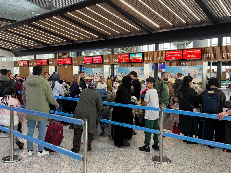 Yolcular, terminal girişlerindeki kontrol noktalarında yoğunluk oluşturdu. İstanbul Havalimanı işletmecisi İGA ekipleri, terminal girişinde yolcuları yoğunluğu daha az olan kontrol noktalarına yönlendirdi.