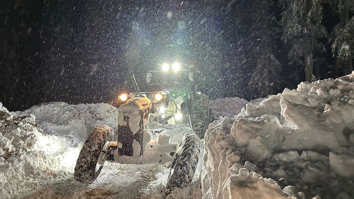 Greyder, İl Özel İdaresine ait iş makinesi ve 4 arazi aracıyla bölgeye giden 12 kişilik ekip, çalışmalar sonucu araçları bulunduğu yerden çıkardı.