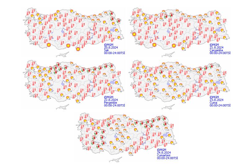 HAVA SICAKLIĞIMeteoroloji'den edinilen son değerlendirmelere göre hava sıcaklıklarında önemli bir değişiklik beklenmiyor. Ülkemiz genelinde mevsim normalleri üzerinde seyredeceği tahmin ediliyor.