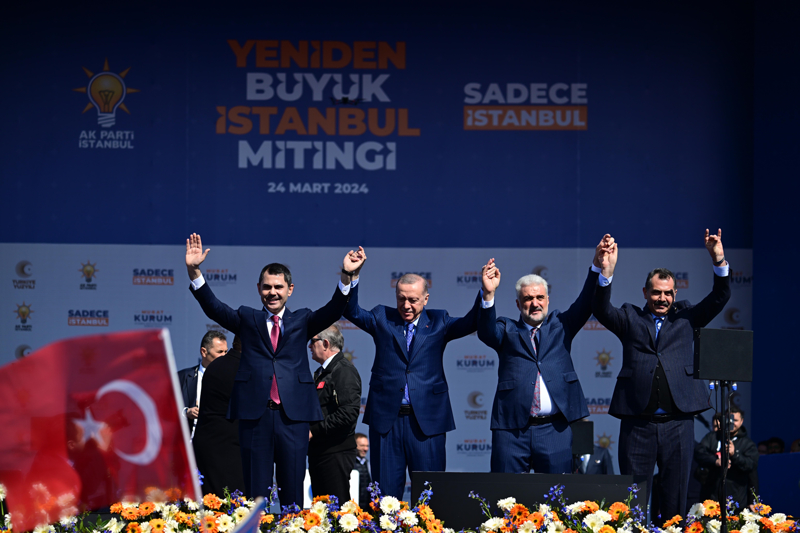 Cumhurbaşkanı Erdoğan, partisinin Ana Kademe, Gençlik Kolları ve Kadın Kolları teşkilatına seslenerek, "Bu adımı atmaya var mıyız? Bir tarafta yaklaşan deprem tehlikesini umursamayanlar var, diğer tarafta İstanbul'u depreme hazırlamak için programı, projesi hazır olanlar var. Bir tarafta şehrin trafiğini rahatlatmak için kılını kımıldatmayanlar var, diğer tarafta metrosundan tüneline tüm ulaşım projelerini seferber edenler var. Allah'ın izniyle 31 Mart'ta bu düğümü çözecek ve İstanbul'un 'Türkiye Yüzyılı' yürüyüşünü biz başlatacağız." ifadelerini kullandı.