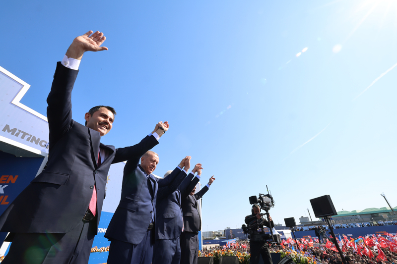 Başkan Erdoğan'ın "31 Mart'ta Türkiye Yüzyılı şehirleri için hazır mıyız, Türkiye Yüzyılı şehirleri için kararlı mıyız? 31 Mart'ta gerçek belediyeciliği tercih ediyor muyuz?" sorusuna, kalabalık "Hazırız" yanıtını verdi.