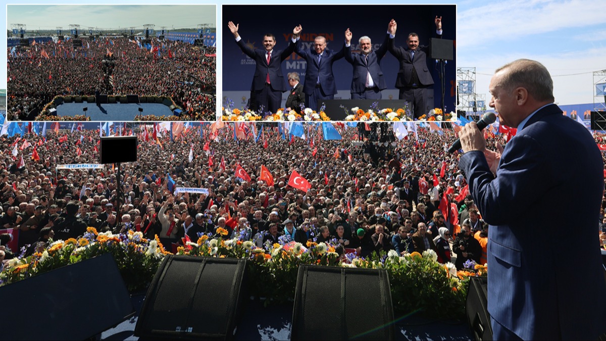 Başkan Erdoğan, İstanbul Büyükşehir Belediye Başkanı olduğu dönemde İstanbul'un kötü halini anımsatarak, "Çöp, çukur ve çamur. CHP demek bu. Ekrem denilen arkadaş burada göreve başladıktan sonra ne değişti? Yine çöp, çukur, yarı zamanlı mesai. Bunu yaptı. Şimdi de bakıyorsunuz, israftan bahsediyor. Yav israf sende. Sen her şeyi israf olarak zaten yaptın ve akıllı belediyecilik diyor. Nerede akıllı belediyecilik? Akılsız belediyecilik. Şu İstanbul'da neler çekmedik ya, neler. Şimdi bütün bu dönüşümü, devranı Allah'ın izniyle değişmeye var mıyız? Şu bir hafta gece gündüz demeden çalışıyor muyuz? Ana kademe, durmuyoruz. Yakın markajla çalışacağız. Çok koşacağız, çok çalışacağız ve Yeniden İstanbul muradını gerçekleştireceğiz." diye konuştu.
