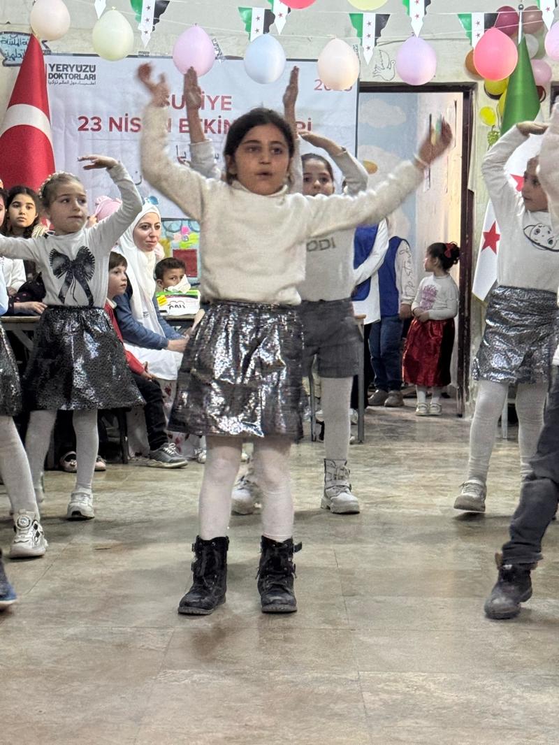Kliniklerinin bulunduğu coğrafyalarda 23 Nisan Ulusal Egemenlik ve Çocuk Bayramı'nı geleneksel olarak kutlayarak hem Türk kültürünü hem de bayram neşesini paylaşan Yeryüzü Doktorları bu sene rejimin son bulması sonrası ilk defa Halep'te yer alan bir ilkokulda 23 Nisan şenliği gerçekleştirdi. Geçen sene Soran, Suluk ve Cinderes'te bulunan kliniklerinde yaptığı kutlamaları bu sene ayrıca Halep'te de gerçekleştiren dernek umutların yeniden yeşerdiği coğrafyada çocuklara hem moral verdi hem de eğlenceyi arşa çıkardı. İbn Muawiya Okulu'nda okuyan ilkokul öğrenci ve çevre civarında yaşayan küçük çocuklar için okul bahçesine etkinlik alanı kuran dernek, alanda yer alan makinelerde pamuk şeker ve patlamış mısır dağıtıp, palyaço eşliğinde karnaval havası yarattı. 200'den fazla çocuğun doyasıya dans edip şarkılar söylediği eğlencede doktorlar ve dernek personeli hatıra fotoğrafı çektirerek Halep'te savaş sonrası unutulmaz güzel hatıralar bıraktı.