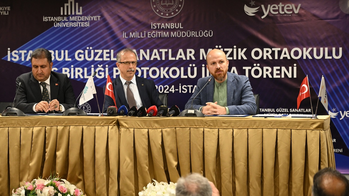 Medeniyet Üniversitesi Ziraat Bankası Kütüphanesi'nde düzenlenen imza törenine, İstanbul İl Milli Eğitim Müdürü Murat Mücahit Yentür, YETEV Mütevelli Heyeti Başkanı Bilal Erdoğan, Medeniyet Üniversitesi Rektörü Prof. Dr. Gülfettin Çelik katıldı.