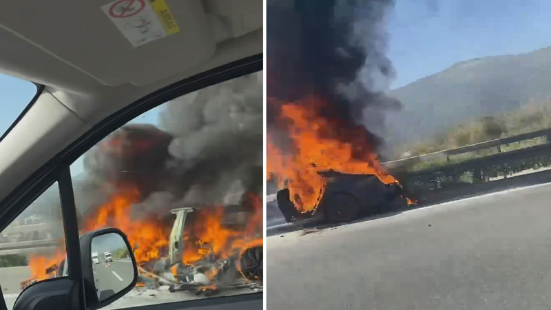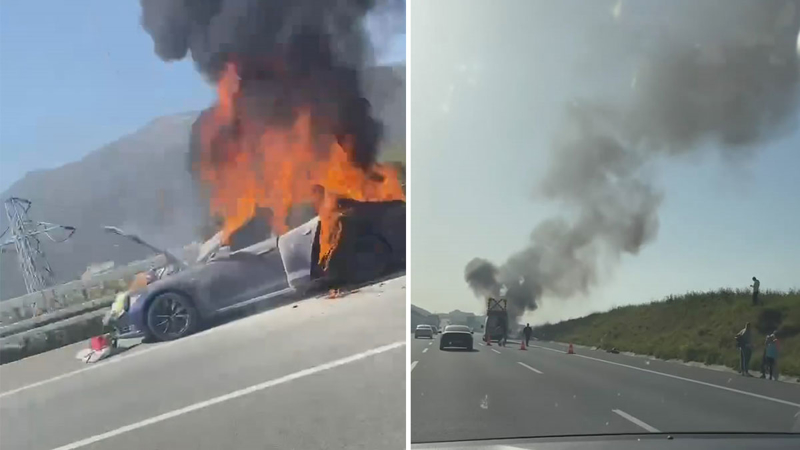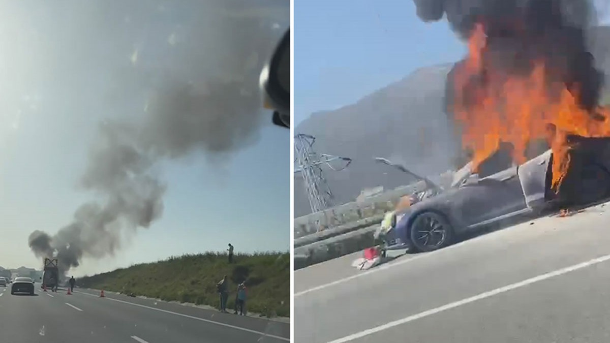 Sürücü, otomobili emniyet şeridine çekti. Bir süre sonra alev alan otomobil, saniyeler içerisinde küle döndü.
