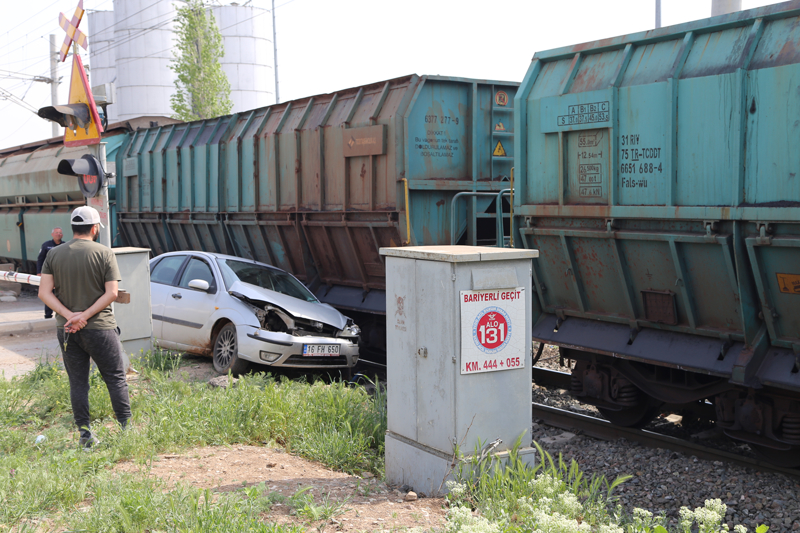 Sefer bilgisi öğrenilemeyen yük treni, Güven Caddesi'ndeki kontrollü hemzemin geçitte V.C. yönetimindeki 16 FH 650 plakalı otomobille çarpıştı.