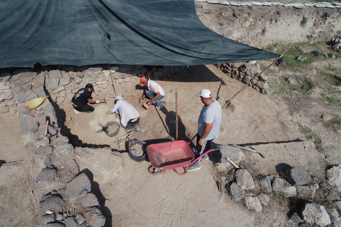"Höyükte, üzümcülük ve bağcılığın yanı sıra dokuma ve tekstille ilgili arkeolojik veriler var. Kumaşlar günümüze kadar korunmuyor ama bunun dışında arkeozoologlarımız keçi, koyun gibi hayvanlarla ilgili bize bilgiler veriyorlar. Arkeobotanik ekibimiz de aynı şekilde o dönem florası hakkında yeni bilgilere ulaşıyorlar. Kazılarda arkeolojik olarak oldukça fazla tezgah ağırlığı ele geçiriyoruz. Bunların dışında ipi eğirmek için kullanılan ağırşaklar buluyoruz." diye konuştu.