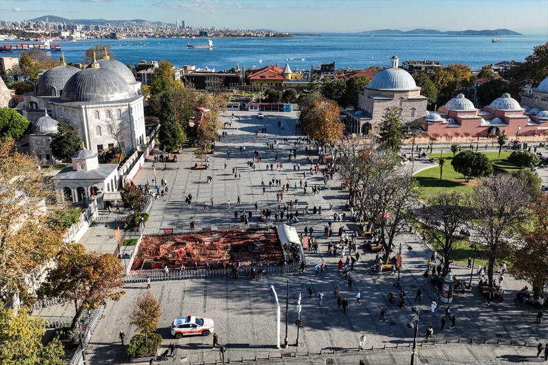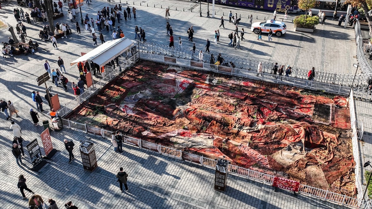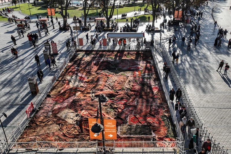 Ayasofya Meydanı'ndaki enstalasyon Gazze'deki halıları hatırlatıyor