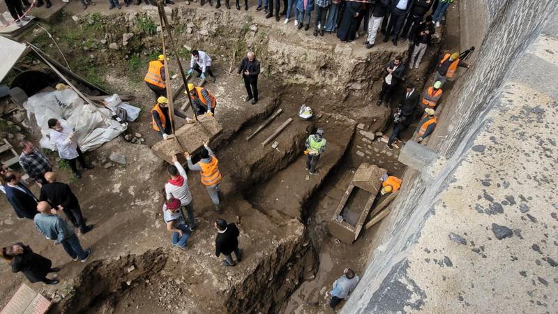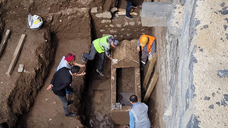 Çalışmaları Saint George Kilisesi, eski cezaevi ve 75 nolu burcun arasında kalan bölgede sürdürdüklerini aktaran Koç, daha önce de benzer şekilde tekil mezarlara denk geldiklerini anımsattı.