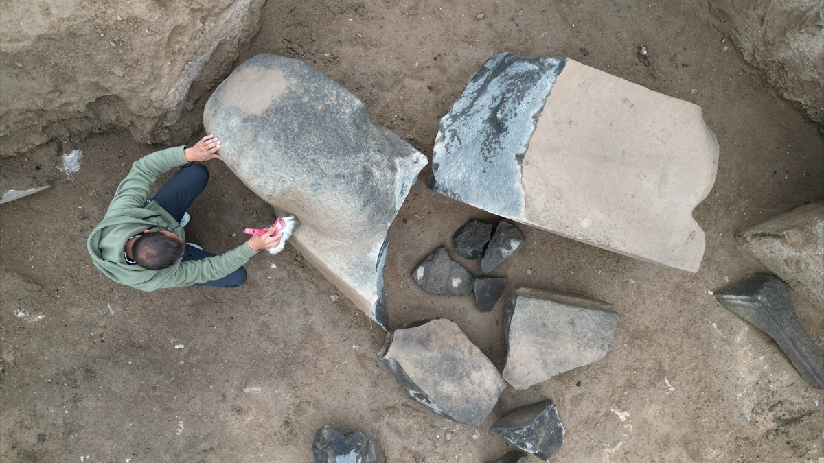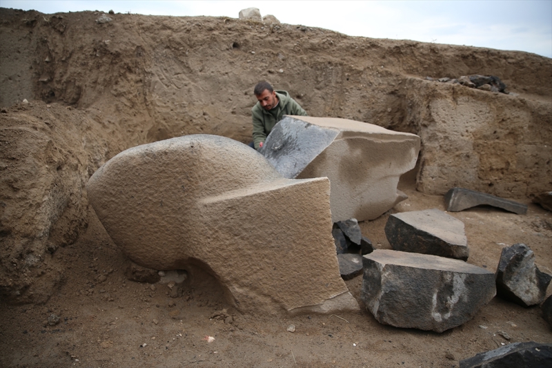 Daha önce anıtsal yapı grubunun gün yüzüne çıkarıldığı alanda kazı yapan akademisyenler, 2 metre uzunluğunda ve 1 metre genişliğinde bazalt taştan yapılan bir heykelle karşılaştı.