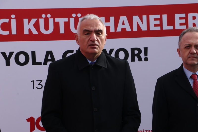 Kültür ve Turizm Bakanı Mehmet Nuri Ersoy, Ankara Cumhurbaşkanlığı Senfoni Orkestrası (CSO) önünde düzenlenen 'Gezici Kütüphane Uğurlama Töreni'ne katıldı. Törende konuşan Bakan Ersoy, Kültür ve Turizm Bakanlığı olarak ülkenin hemen her noktasına kültür merkezleri inşa ederek, kültür ve sanata kolay erişimin sağlanması için gerekli altyapıyı oluşturduklarını belirtti. Bakan Ersoy, konuşmasında, "Bu bağlamda kütüphanecilikte en önemli noktalarından biri olarak görüyoruz. Vatandaşlarımızın özellikle yerleşik kütüphanelere ulaşmakta zorlandıkları noktalarda ulaşabilmeleri için gezici kütüphane çalışmaları yapıyoruz. Yıl sonu itibarıyla kütüphane sayımız 1296'ya ulaştı. Son 5 yıllık dönemde 300 yeni kütüphaneyi inşa ederek vatandaşlarımızın kullanımına açtık" dedi.