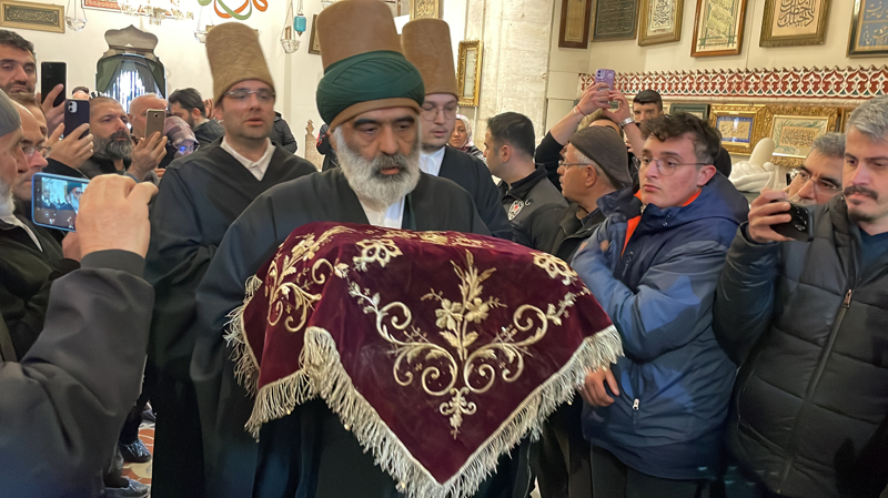 Semazenler tarafından müzeye getirilen Sakal-ı Şerif, bulunduğu 40 kat bohçadan salavatlar eşliğinde çıkarıldı.
