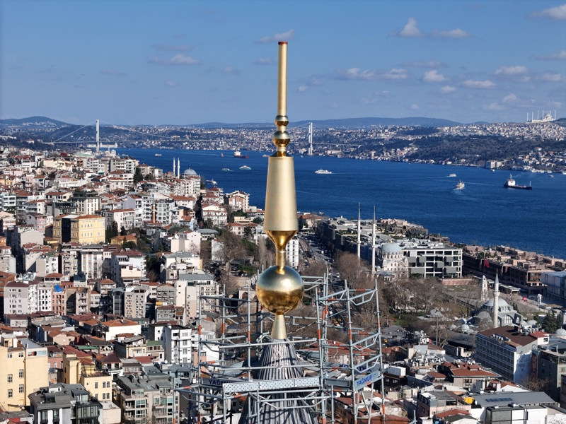 İstanbul Boğazı'yla bütünleşen Galata Kulesi'nin altın rengindeki alemi kartpostallık görüntü oluşturdu. Tarihte ilk kez alemsiz kalan Galata Kulesi'nin tekrar eski görünümüne kavuştuğu görüldü. 270 kiloluk bakır alem dağcılar tarafından vinç yardımıyla 4 parça halinde yaklaşık 5 saat süren operasyonla takıldı. Dağcılar alemin takıldığı kubbesindeki bölgeyi çekiç yardımıyla düzenledi. Kubbenin tamamında ise iskelelerin kurulu olduğu ve çalışmaların devam ettiği görüldü. Restorasyon çalışmalarının Nisan sonuna doğru tamamlanacağı da öğrenildi."GALATA KULESİ OSMANLI'NIN BATIYA AÇILAN YÜZÜ"
