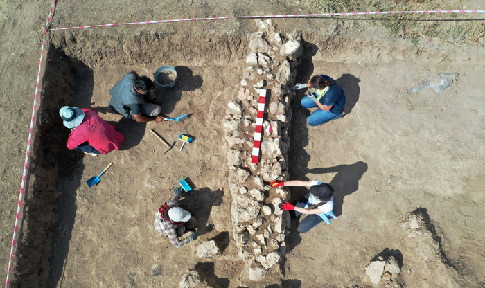 Taştan yapılmış dikdörtgen planlı yeni bir mimari yapının 70-80 santimetre yüksekliğindeki duvarlarını da ortaya çıkardıklarını bildiren Coşkun, yapının üst kısmının kerpiçten inşa edildiğini ve yıkıldığını aktardı.