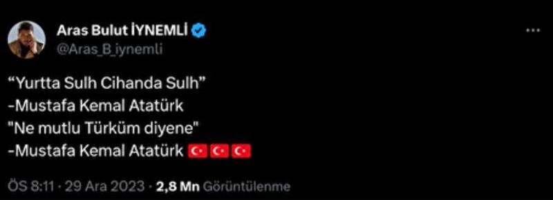 Disney'in kararı sonrası kafasını adeta kuma gömen İynemli, Suudi Arabistan'da oynanacak Süper Kupa finalinin iptali sonrası yaptığı paylaşımda, Atatürk'ün sözlerini paylaşmıştı.