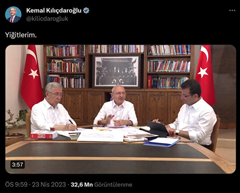 Kılıçdaroğlu, seçimlerden hemen önce İmamoğlu ve Yavaş ile birlikte çektiği videoda, ikili için "Yiğitlerim" ifadelerini kullanmış ve projelerini anlatmıştı.