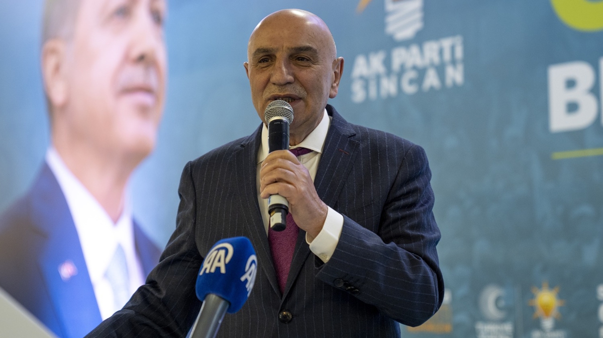 "AK Parti belediyeciliği ve Cumhur İttifakı'mız ile başkentimizi dünya başkentleri arasında hak ettiği yere getireceğiz. Dünyada yaşanılabilir bir başkent, Ankara'mızın hak ettiği yer burasıdır. Dolayısıyla hizmeti olmayan, vizyonu olmayan, projesi olmayan 'Ben Ankara'ya hizmet etmeyeceğim.' diyen Yavaş'a 'dur.' diyeceğiz. Nereye göndereceğiz onu? Londra'ya göndereceğiz. Londra'da evi var nasıl olsa. Orada da FETÖ'cülerle, PKK'lılarla kol kola resimleri var. Kol kola. Vay dünyanın haline. Bundan Ankara Büyükşehir Belediye Başkanı olur mu? Olmadı zaten. 5 yılımız, heba olan yıllarımız, 5 yılımız, Ankara'mızın boş yılları oldu."